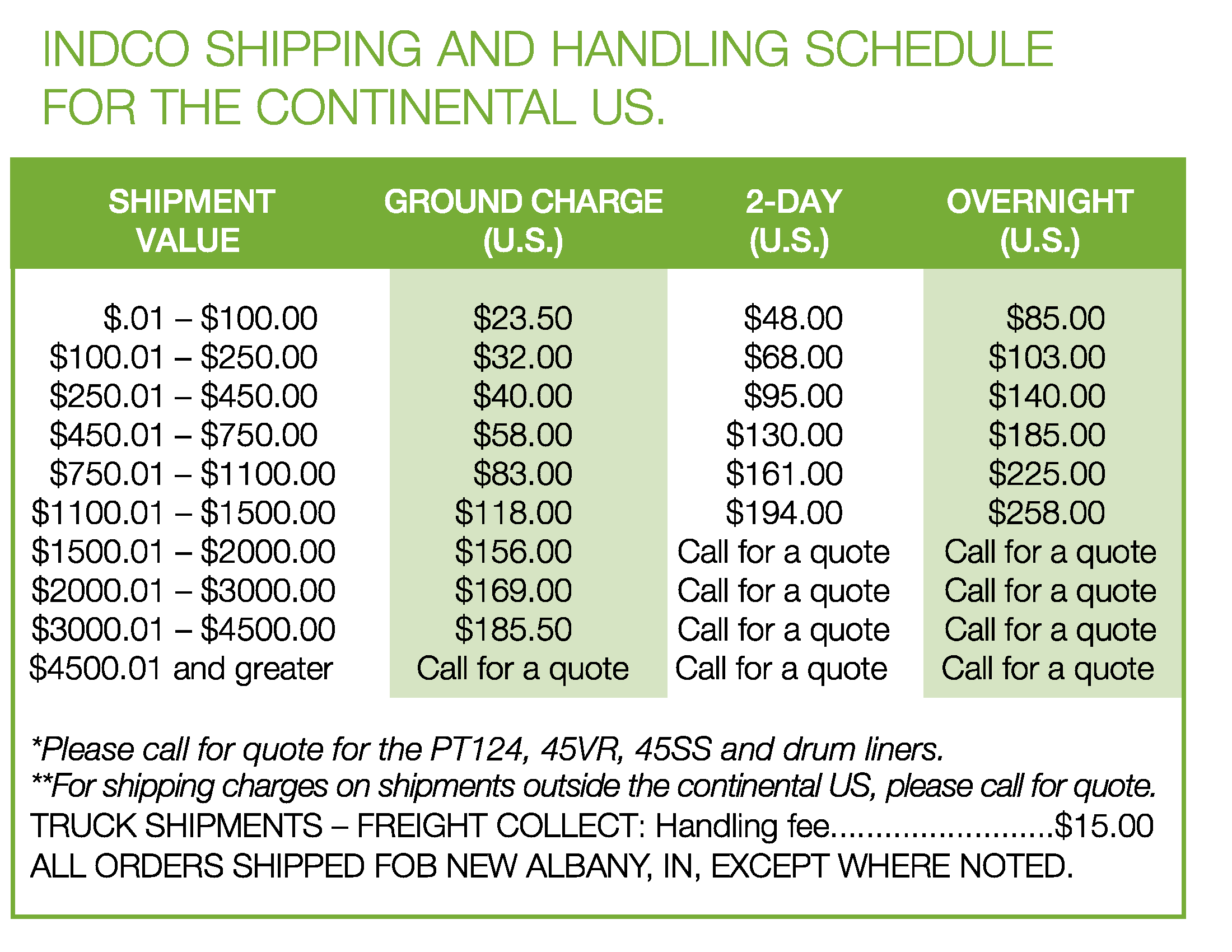 INDCO Shipping Chart 2026